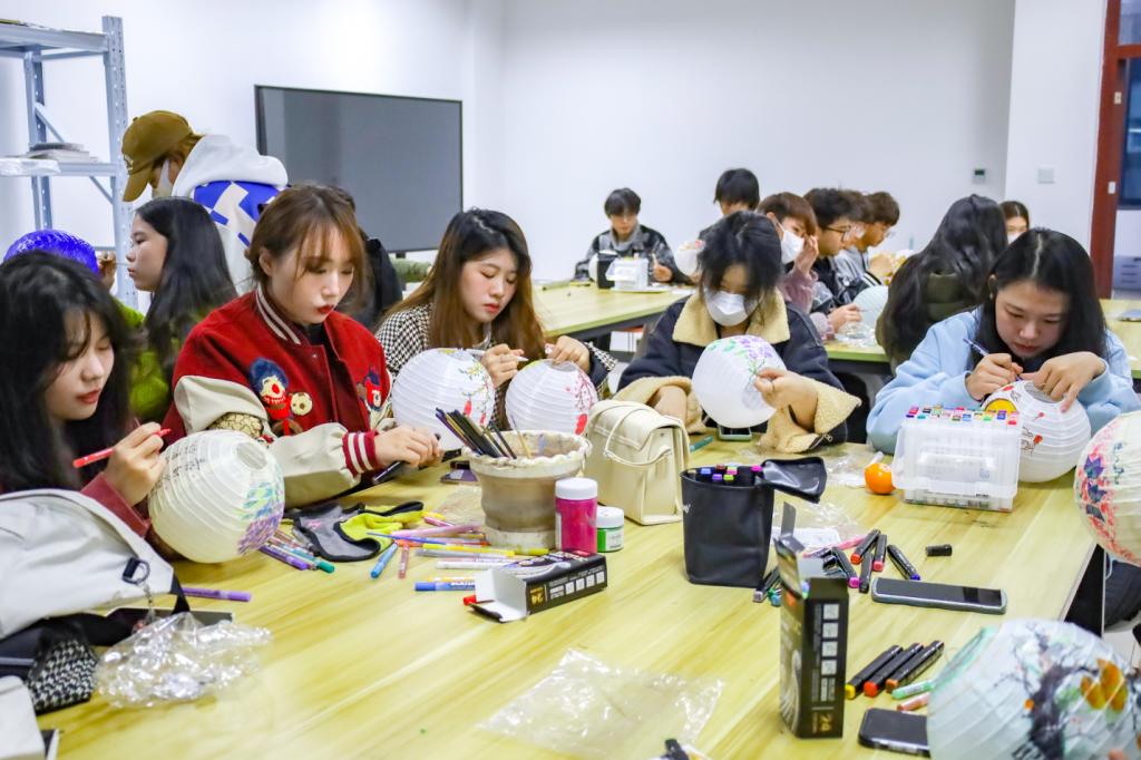 据活动负责人、环境设计专业2021级(1)班的吴锴介绍,本次活动共包含书法、手工、缠花等六个俱乐部成员参与绘制,成员们在结合俱乐部特色的基础上,充分发挥想象力,绘制出自己的“专属”宫灯。“传统技艺中蕴含着先辈们的心血,希望大家在创作过程中能够沉浸感受,将这份匠人精神传承下去。”