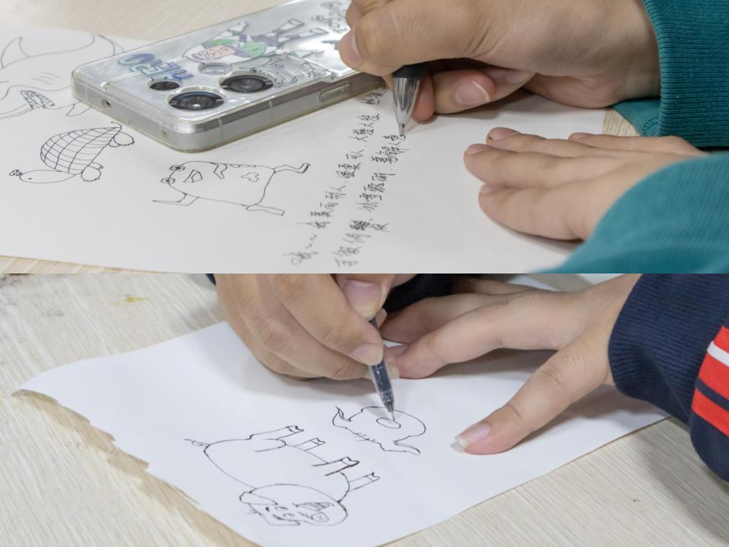 在认清自我环节中,同学们需将在纸上画出自己想要成为的动物或者植物。美术学专业2022级(2)班的李炜琪以猴子形象自喻。“小猴子身上活泼好动、动手能力强等特点我觉得和自己很像,并且猴子也是我的生肖属相。”她表示,希望在今后的老员工活中依旧能保持乐观积极的心态,结识更多志同道合的伙伴。