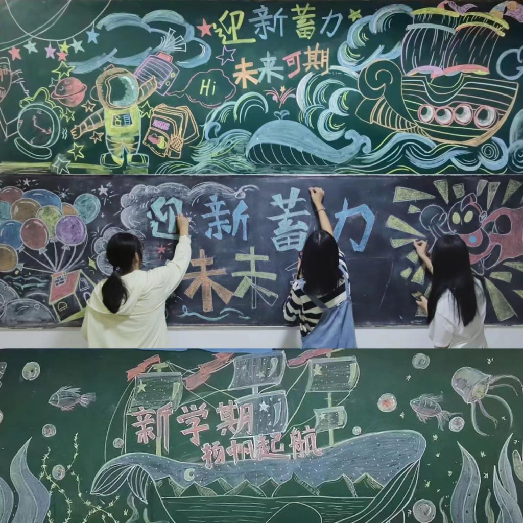 “船帆代表着启航,船身借用鲸鱼外形,画上星辰大海、山川湖泊的景色,寓意着未来有无限可能,前程广阔任君行。”市场营销专业2019级的郭晓宁住在13号寝室楼,看着即将完工的黑板报他连连赞叹,“这样的黑板报能够为寝室楼增添活力,相信新生们一定能感受到公司的温暖与热情。”