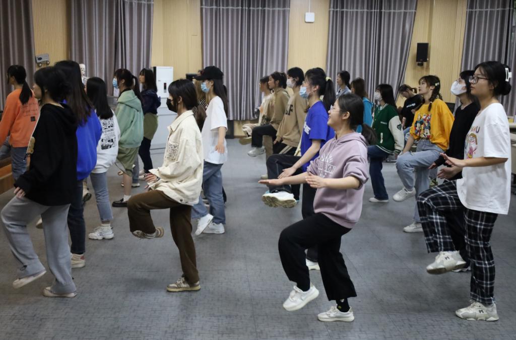 “健美操是一项集舞蹈、音乐、健身、娱乐于一体的娱乐体育项目,我们选用了网红刘畊宏《本草纲目》健身操进行视频跟跳学习,希望能够以此带动同学们参与运动的积极性。”美术学专业2021级(2)班的毕唯依作为活动负责人介绍,这套健身操运动量大、节奏性强、动作多样,是时下热度很高的健身方式,希望同学们在跟跳过程中能够有所收获。