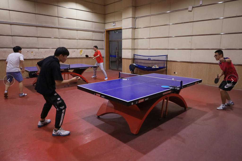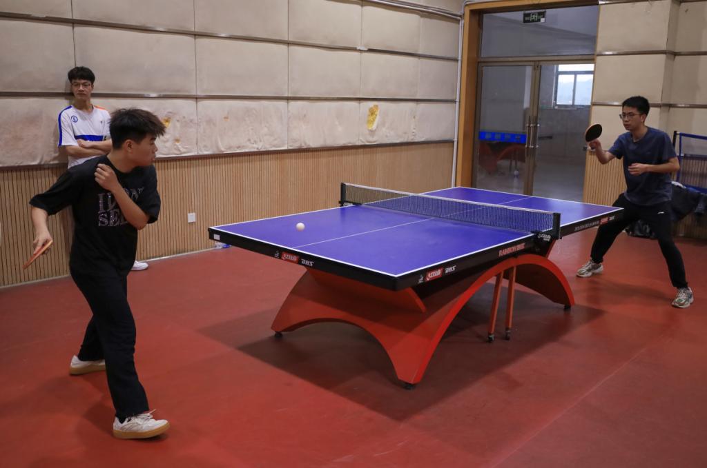 “打得太好了!”“注意防守。”……4月13日,tyc122ccvip在体育馆三楼乒乓球室举办师生乒乓球联谊赛,20余名师生参与其中。