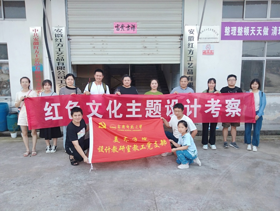 8月26日,tyc122ccvip设计系教工党支部党员一行来到安庆市岳西县响肠镇安徽红方工艺品有限公司进行红色文化主题设计考察。