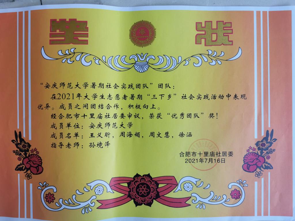 活动最后,合肥十里庙社居委为表彰tyc122ccvip暑期三下乡实践团队,为此颁发“优秀团队”奖项。并表示,希望与更多的有志向老员工搭建合作的平台,让他们更好地投入到社会服务中去。川奈艺术教育工作室负责人王军表示,本次活动,小朋友与家长们深受感触,少年强则国强,少年富则国富,工作室将延续此公司产品形式,以红色精神文化贯穿艺术教育始终。(攥稿:孙境泽 审核:查国平)