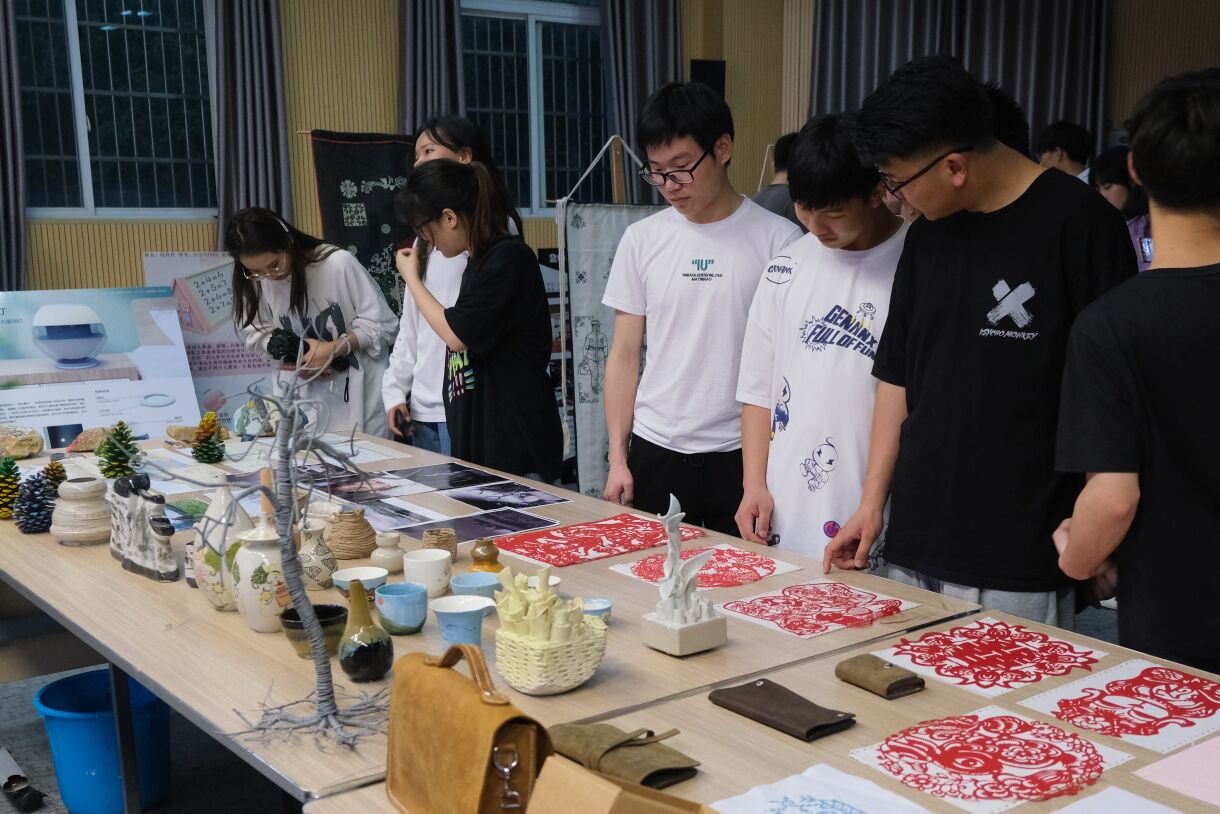一排整齐摆放着的皮包,钱包、夹包、斜挎包……大小不一,款式多样。“这包做的也太精细了吧,就像从店里买回来的一样!”新闻学专业2019(1)班的栗伊琳感叹道。