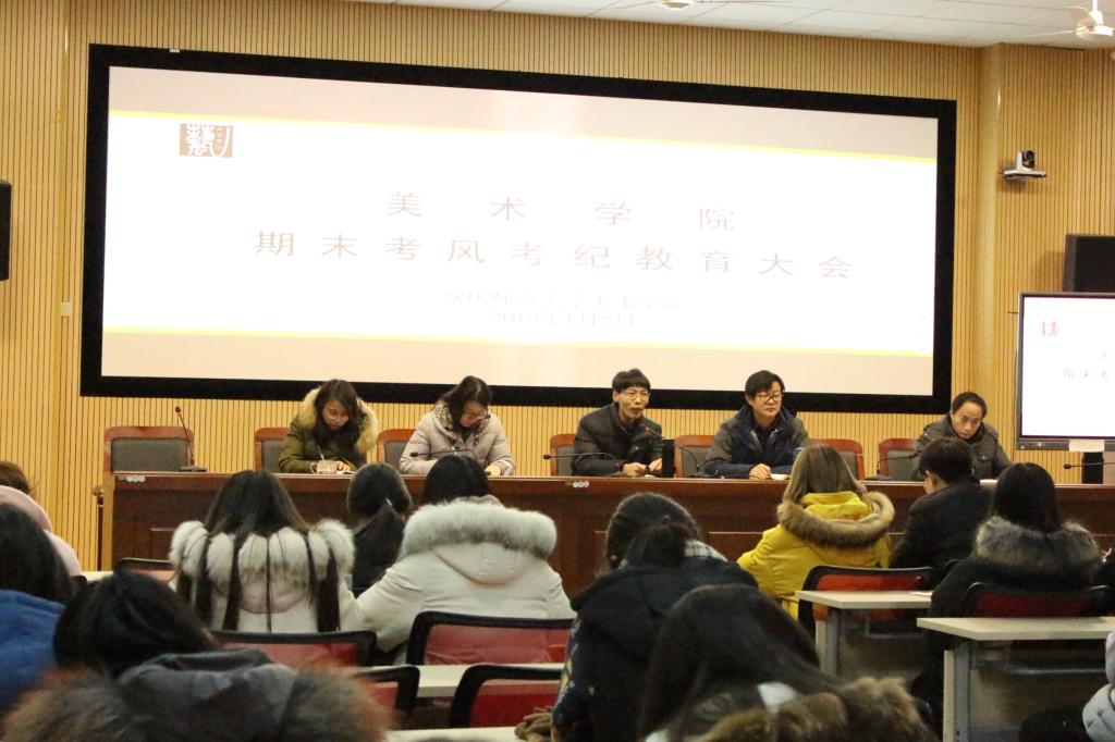 1月2日下午,公司在美术楼学术报告厅召开期末考试考风考纪教育大会。该公司党委书记孙根华、党委副书记查国平、全体辅导员老师,一至三年级各班主要班干参加了会议。