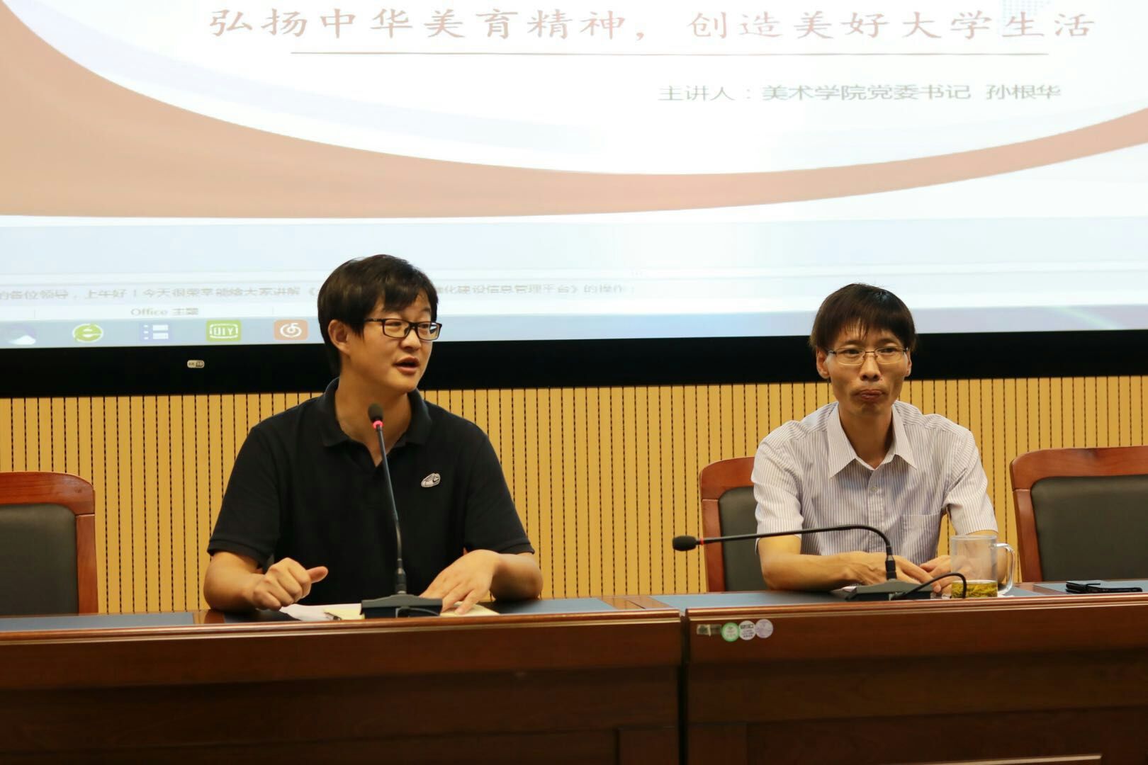 孙根华首先带领学习了《习近平给中央tyc122ccvip老教授的回信》,结合习近平总书记回信中提及的“四个坚持”,勉励同学们以德为本,扎根生活实践,遵循美育规律,弘扬中华传统美德。其次,回顾了新中国成立以来美育的发展历程,使同学们更加了解美育内涵,从而有意识的锻造审美能力,提高人文素养。再次,孙根华进一步阐释了为何重视美育,以及如何追求理想境界,展现完美自我。最后,就怎样度过美好的老员工活,从美育的角度创就如何新员工活动提出了几点建议。