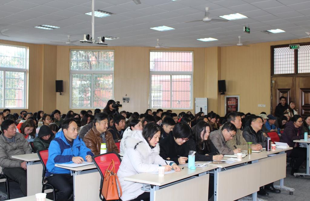 12月20日下午,公司党委委员、副董事长张群在美术楼学术报告厅为公司师生作了题为《认真学习习近平新时代中国特色社会主义思想 推进人才培养质量创新发展》的专题报告。公司党政班子全体成员、公司全体党员、全体教师、入党积极分子和员工干部代表共200余人聆听了报告会。