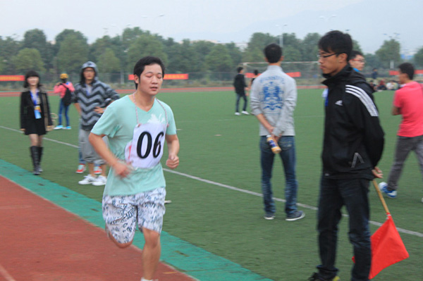 的跑道上,第一集团已经早早地冲过了终点,但宋近传、周保安仍在坚持完成比赛……虽然没有拿到名次,但他们没有放弃,写在他们的脸上是顽强、是参与的喜悦……因为“我参与,我快乐;我运动,我健康”。