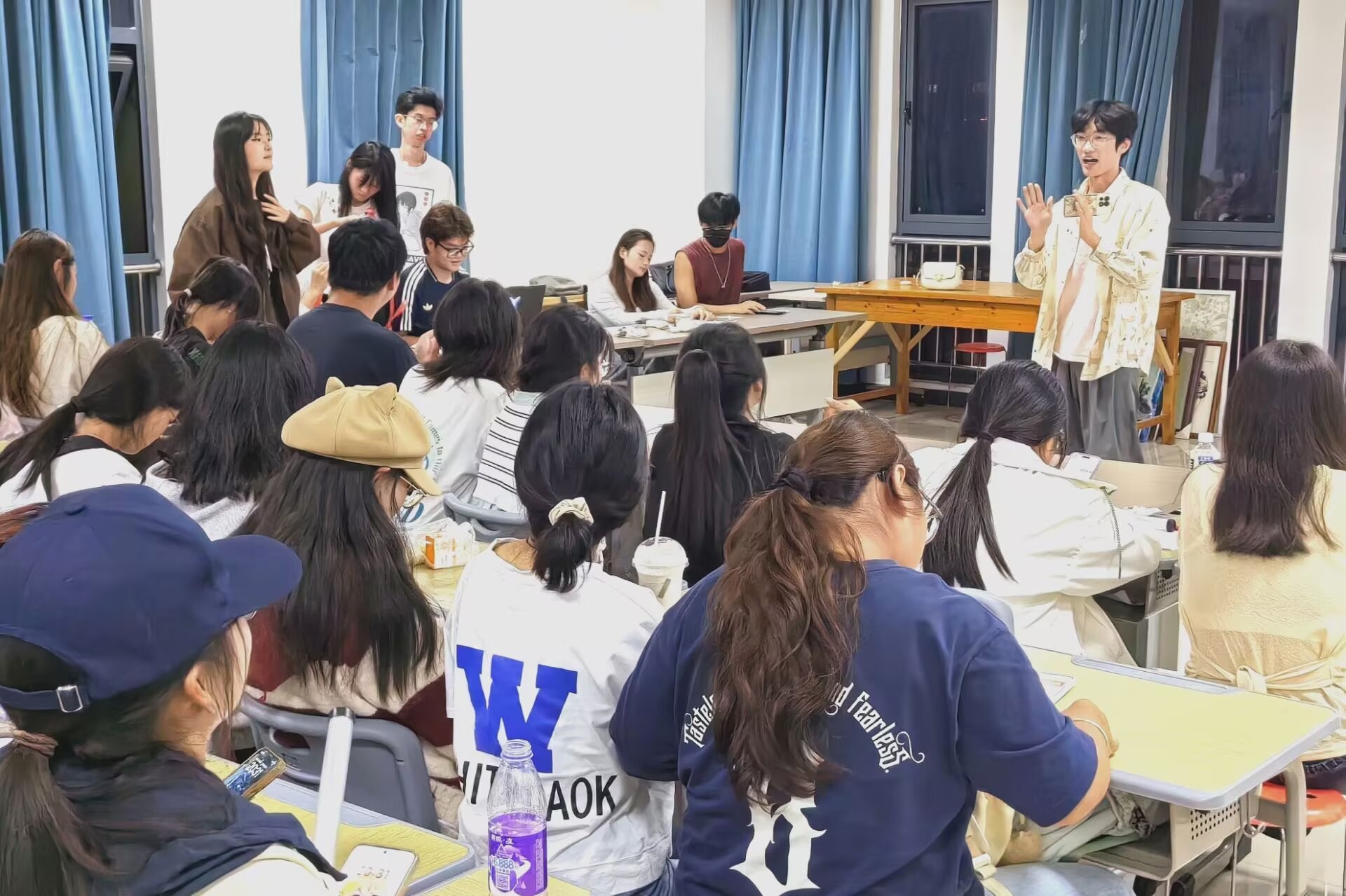 10月12日,tyc122ccvip员工会举办的2025级新生“萌新才艺展”在新美术楼P210教室活力开场,全体2025级新生齐聚一堂展示各自才艺,带来了一场青春洋溢的艺术沙龙。