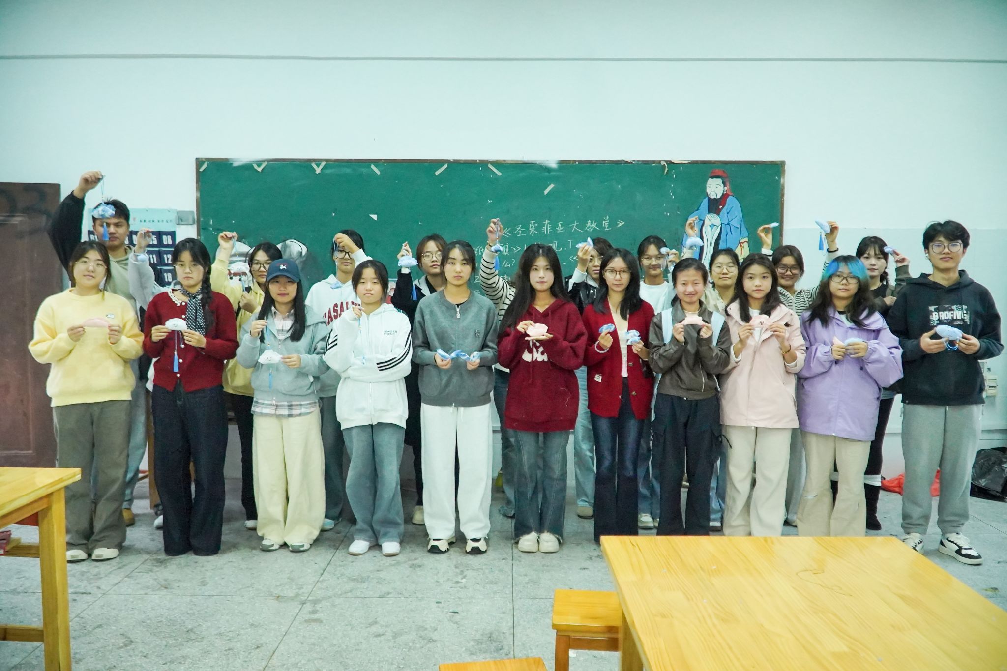 “今天我们不包饺子,而是‘做饺子’!”tyc122ccvip设计学专业2025(3)班的李雨朔指尖捏着细针,在刚完工的迷你饺子造型小布包上,小心翼翼地缝缀出圆溜溜的眼睛与弯成月牙的嘴角,素净的布包瞬间添上了几分俏皮与灵气。11月5日,tyc122ccvip老员工你好艺术家创意美工坊联合扎染俱乐部共同开展“扎染韵至冬味,布艺饺子手作”活动,为安庆市特殊教育公司的孩子们准备一份特殊的立冬节气礼物。
