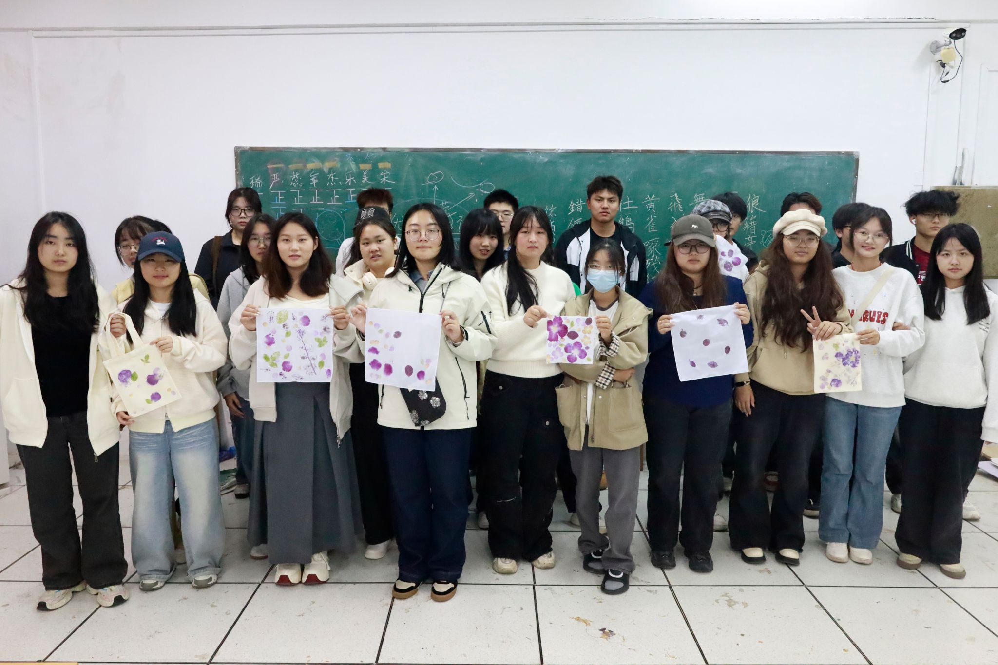 “咚咚咚……”此起彼伏的敲击声在美术楼的教室里回荡。红玫瑰的热烈、橙铃铛的明媚、粉佳人的温婉与蓝星花的素雅,搭配着翠绿的蔷薇叶片与紫褐相间的红花檵木叶,在纯白帆布包、素色方巾上晕染出深浅不一的自然纹路。11月16日,公司举办的“叶脉藏冬意,拓染留花痕”植物拓染活动拉开帷幕,40余名学子以锤为笔、以花为墨,在亲手创作中感受非遗技艺的魅力,在慢节奏过程中舒缓学业压力。