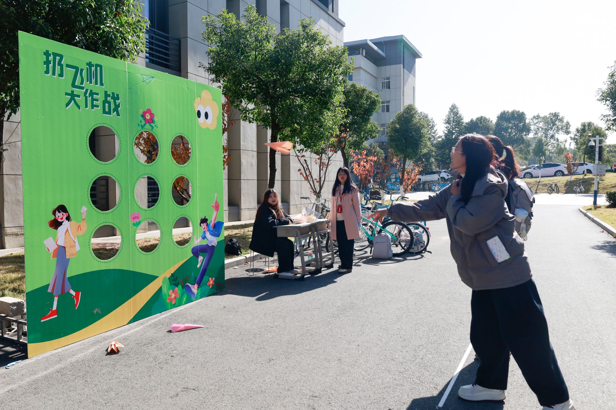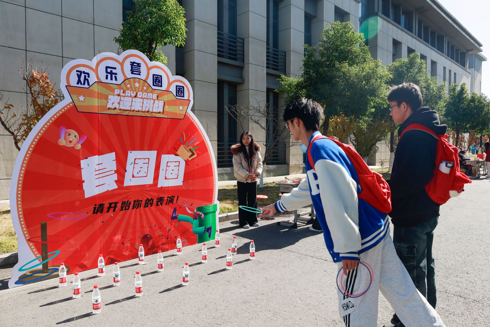 “集满印章抽盲盒,最后一关‘飞机大作战’冲呀!”艺术节集章闯关活动让现场氛围持续“燃”动。参与者需穿梭各展区完成打卡集章,再通过套圈圈、刮奖、趣味空战等互动游戏解锁闯关任务,小青蛙挂件、定制水杯、盲盒积木等丰富奖品,进一步点燃了师生的参与热情,让艺术体验在趣味挑战中更具获得感。