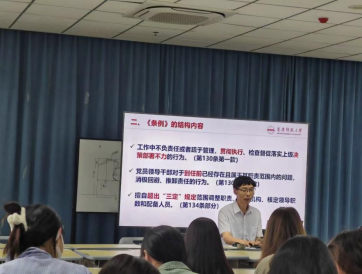 孙根华从深刻领会新修订的《中国共产党纪律处分条例》重要意义、全面准确把握《条例》的结构内容、严格执行和维护党的纪律等方面为大家作了详细地解读。强调要严明政治纪律和政治规矩,坚决维护党中央权威和集中统一领导,深刻领会“两个确立”的决定性意义,坚决做到“两个维护”。要严明党的组织纪律,不断强化党员意识,做到对党忠诚老实,光明磊落;同时,结合公司师德师风建设和员工管理工作实际,孙根华还从廉洁纪律、群众纪律、工作纪律、生活纪律等方面,结合条例的具体内容开展了警示教育,教育师生党员要守住党纪党规红线,严守纪律,砥砺作风,要把学纪、知纪、明纪、守纪融入日常工作、学习和生活中,鼓励广大师生在新时代新征程上为tyc122ccvip发展和中国式现代化作出新的贡献。