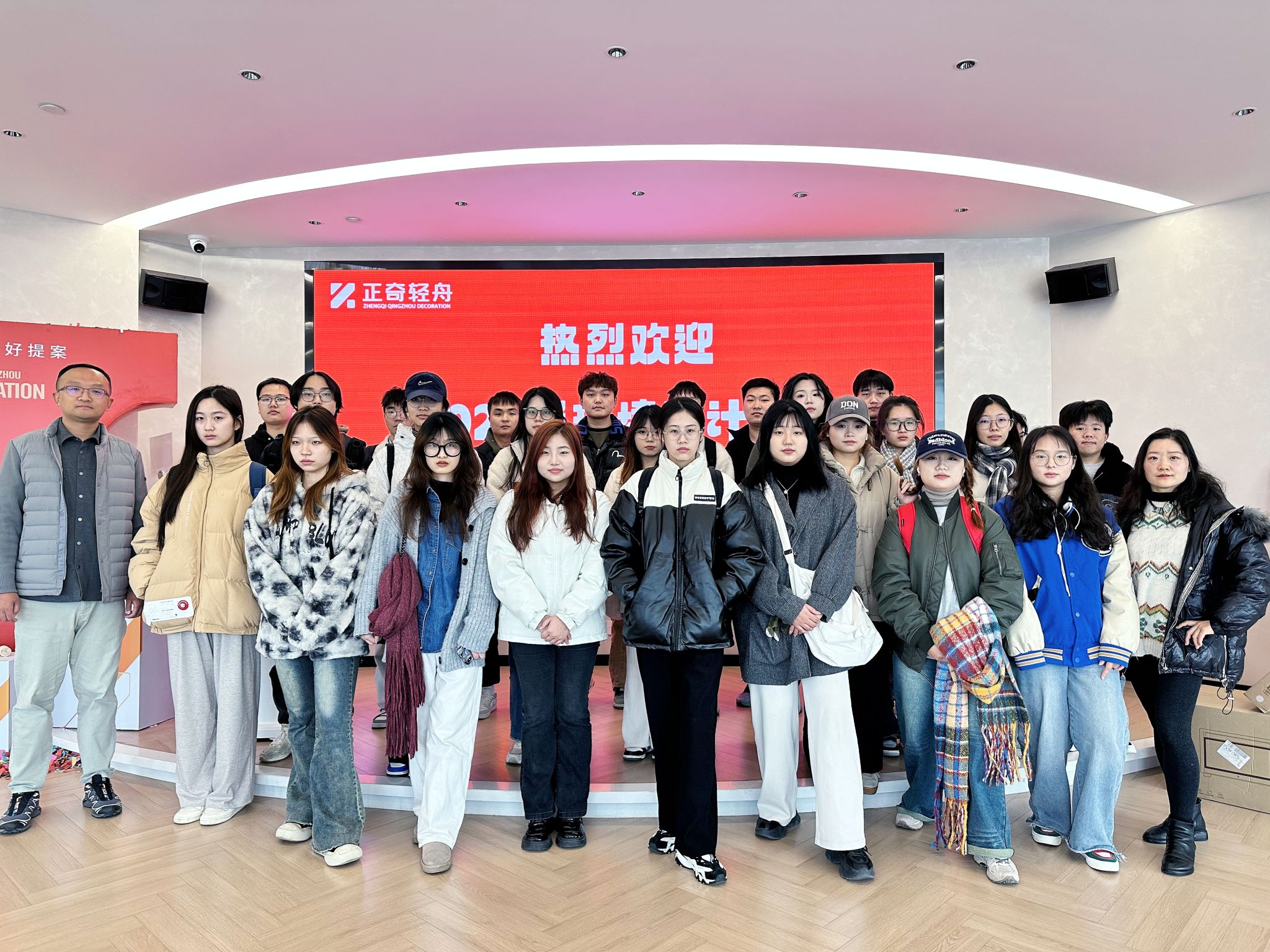 11月20日2022级环境设计专业员工在马丽老师带领下前往安庆市正奇轻舟装饰有限公司开展专业课程考察活动。