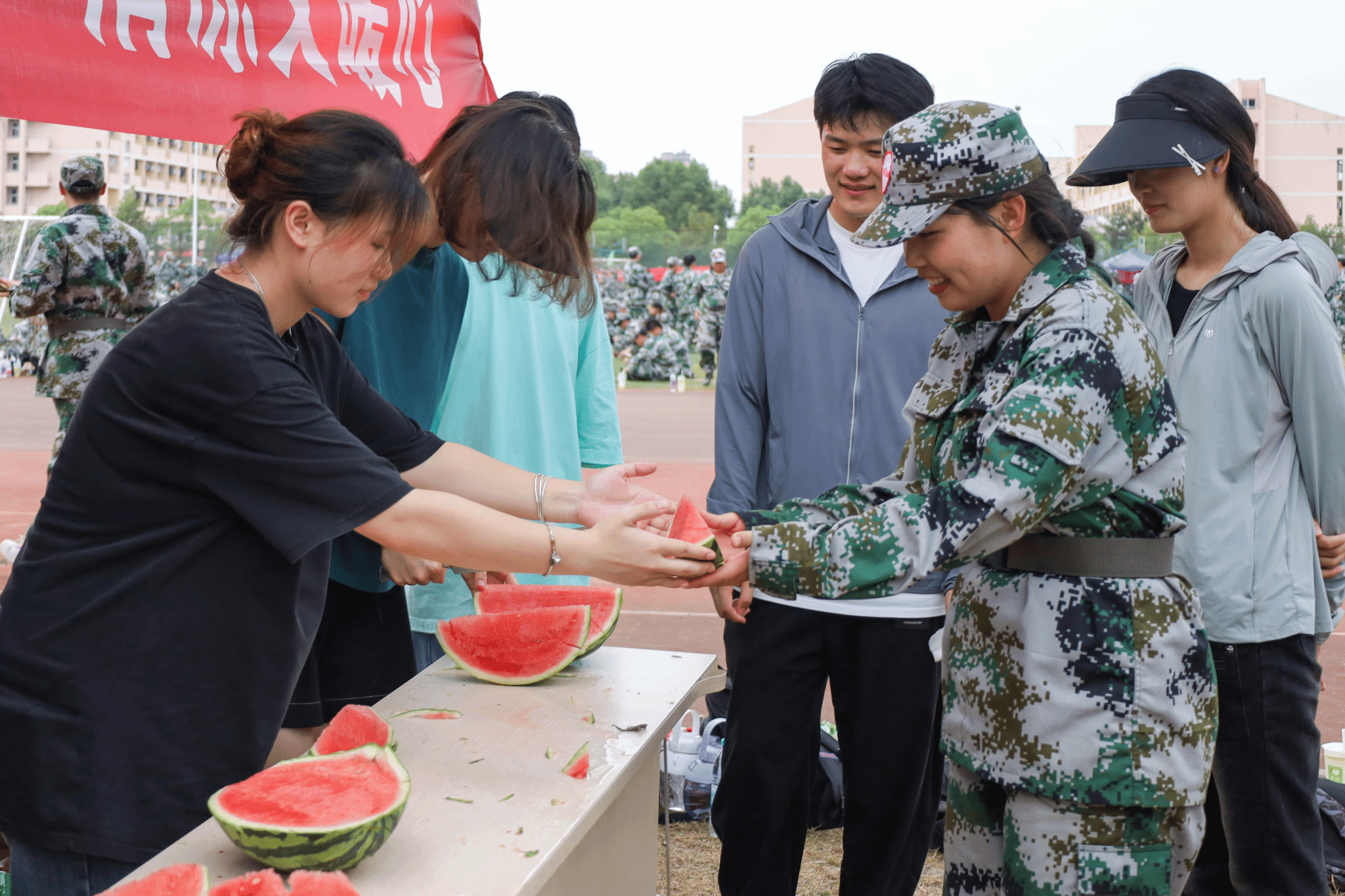 听到教官宣布解散的口令后,设计学类专业2023(4)班的张文翔迫不及待地跑向公司值班点,拿到了今天分发出的第一份西瓜和冷饮。“这几天持续三十多度的高温,在拿到学姐学长递过来的西瓜和冷饮后,我的一句‘谢谢’不禁脱口而出。”张文翔表示,“送清凉”的活动让他感受到了公司的关怀,让他对日后的老员工活充满期待。