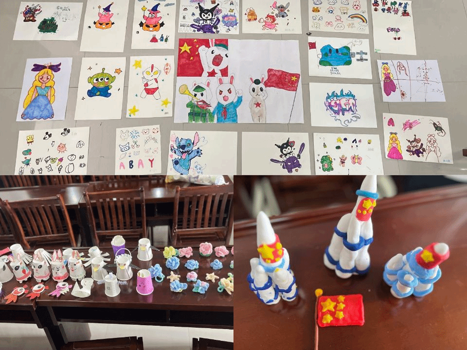 “看我做的红军包!”“我用粘土捏了国旗”……形式多样的艺术课堂为孩子们带来了全新的体验,孩子们纷纷参与其中。“我长大想当宇航员,所以我捏了一个航天飞机。”心中一直有个“航天梦”的陈杜仲小朋友在听完成员们的讲解后更加坚定了自己的梦想,他表示,自己要学习红军战士的精神,不断努力奋斗。