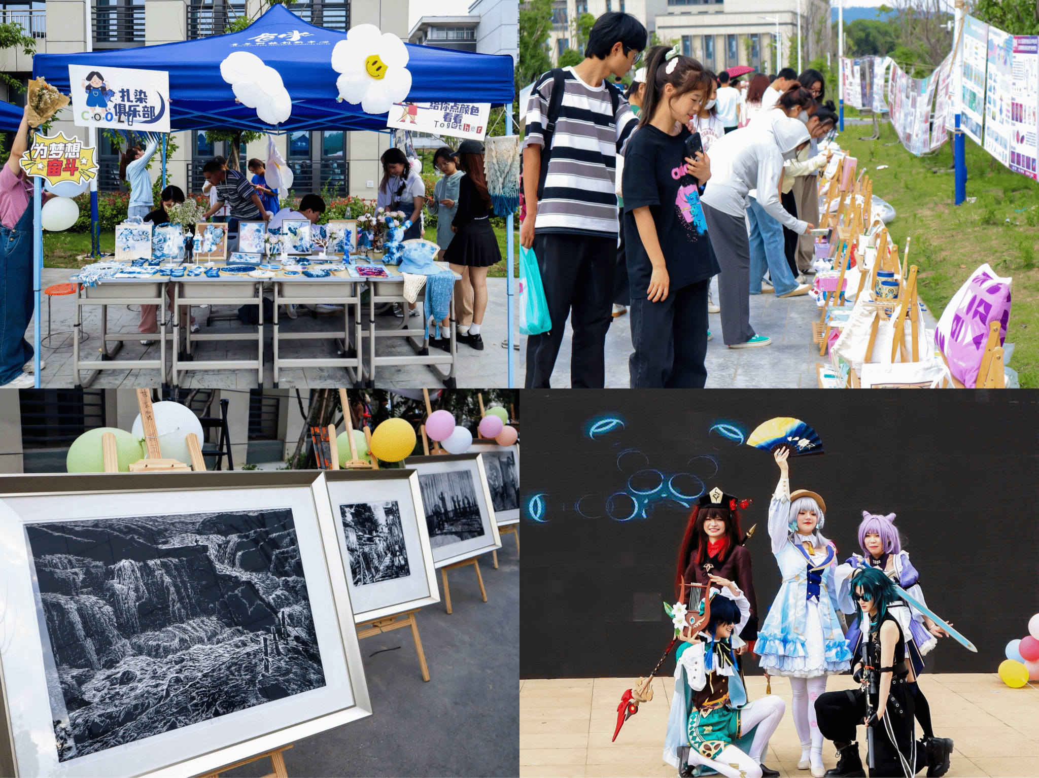 “这幅作品的光影运用恰到好处,仿佛身临其境。”电子信息类专业2022级(8)班的张芳菲化身“讲解员”,向周围伙伴介绍起了作品《早晨的故事》中的光感运用。作为一名“艺术迷”,张芳菲时常参与艺术活动。“相比艺术馆,此次艺术节将艺术带进生活,不仅能欣赏艺术作品,还能‘沉浸式’感受艺术魅力。”