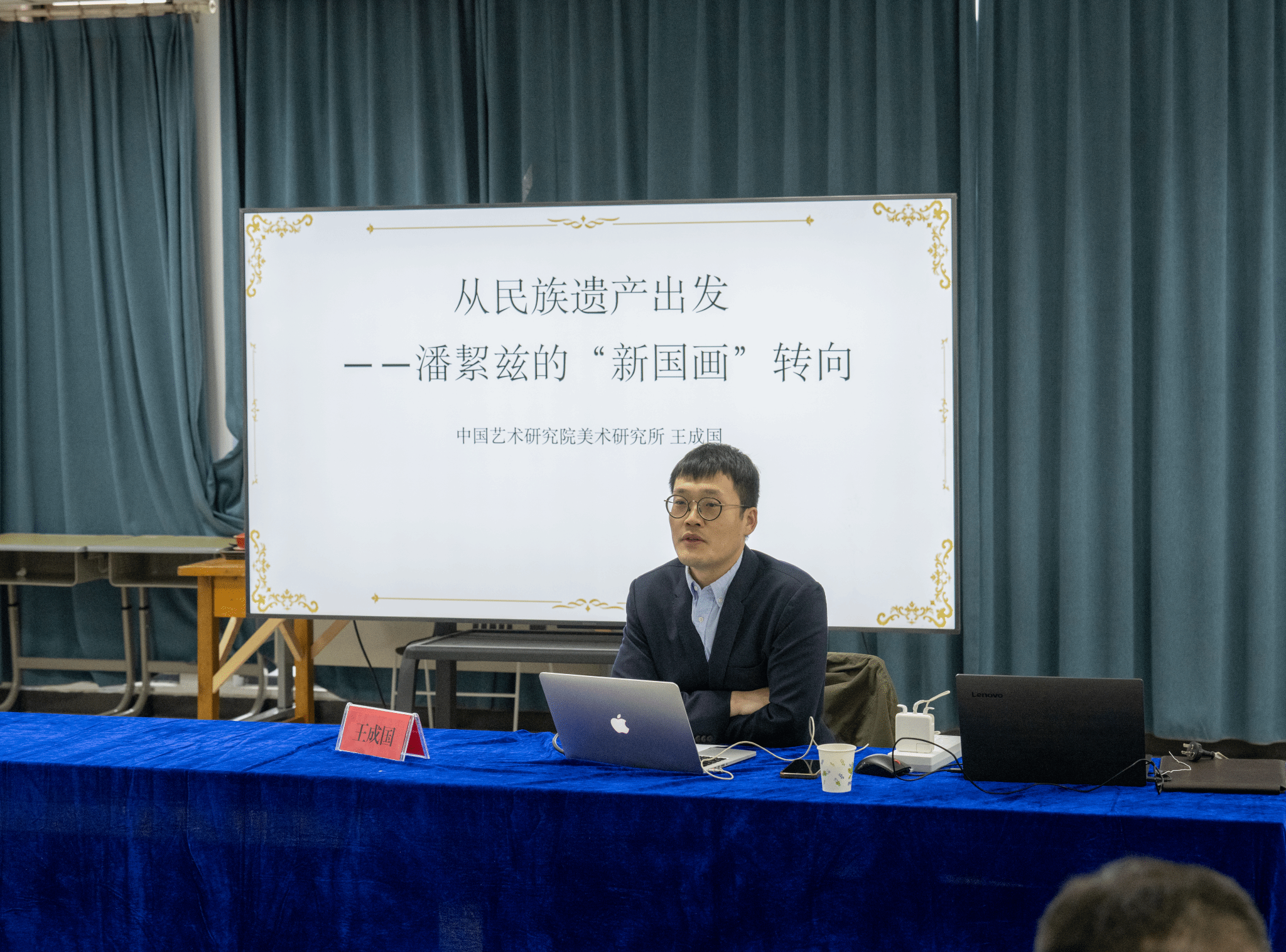 3月28日下午,在tyc122ccvipP楼210多功能教室,中国艺术研究院美术研究所副研究员王成国博士应邀开展了一场主题为“从民族遗产出发:潘絜兹的‘新国画’转向”的学术报告。报告由tyc122ccvip副经理孙国良教授主持,tyc122ccvip部分教师及员工聆听了学术报告,并积极地参与了现场交流。