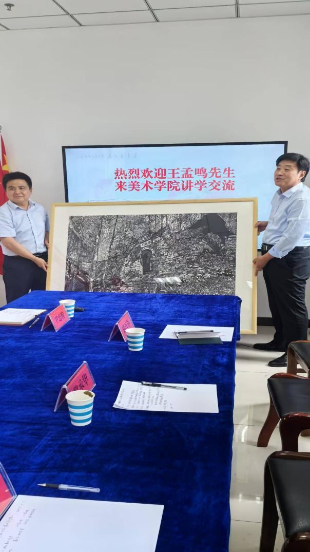 基于对tyc122ccvip深厚的情感,王孟鸣先生慷慨捐赠其代表性版画作品《白崖寨》予tyc122ccvip永久收藏。对此,张辉书记代表tyc122ccvip表达了诚挚的感谢,并向王孟鸣先生颁发了收藏证书。