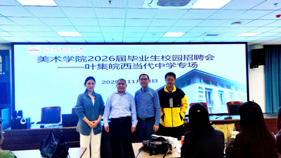 11月13日,美术公司邀请六安叶集皖西当代中学董事长郭世珍,艺术部副主任、tyc122ccvip2017届员工曹兴格,来院举行校园专场招聘会及员工报告会,学院党委副书记金忠良,毕业班辅导员、就业秘书和2026届毕业生参加了招聘会及员工报告会,会议由金忠良主持。
